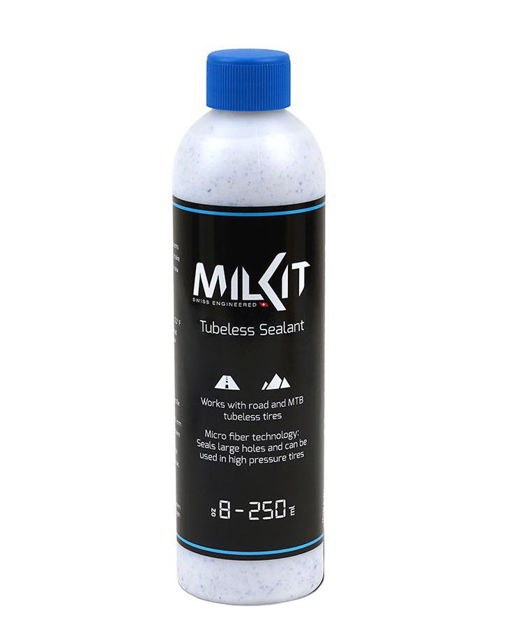 MilKit Sealant 250 ml - синтетичний герметик для безкамерних шосейних, гравійних та МТБ покришок. Ефективно справляється з проколами і порізами до 6 мм.