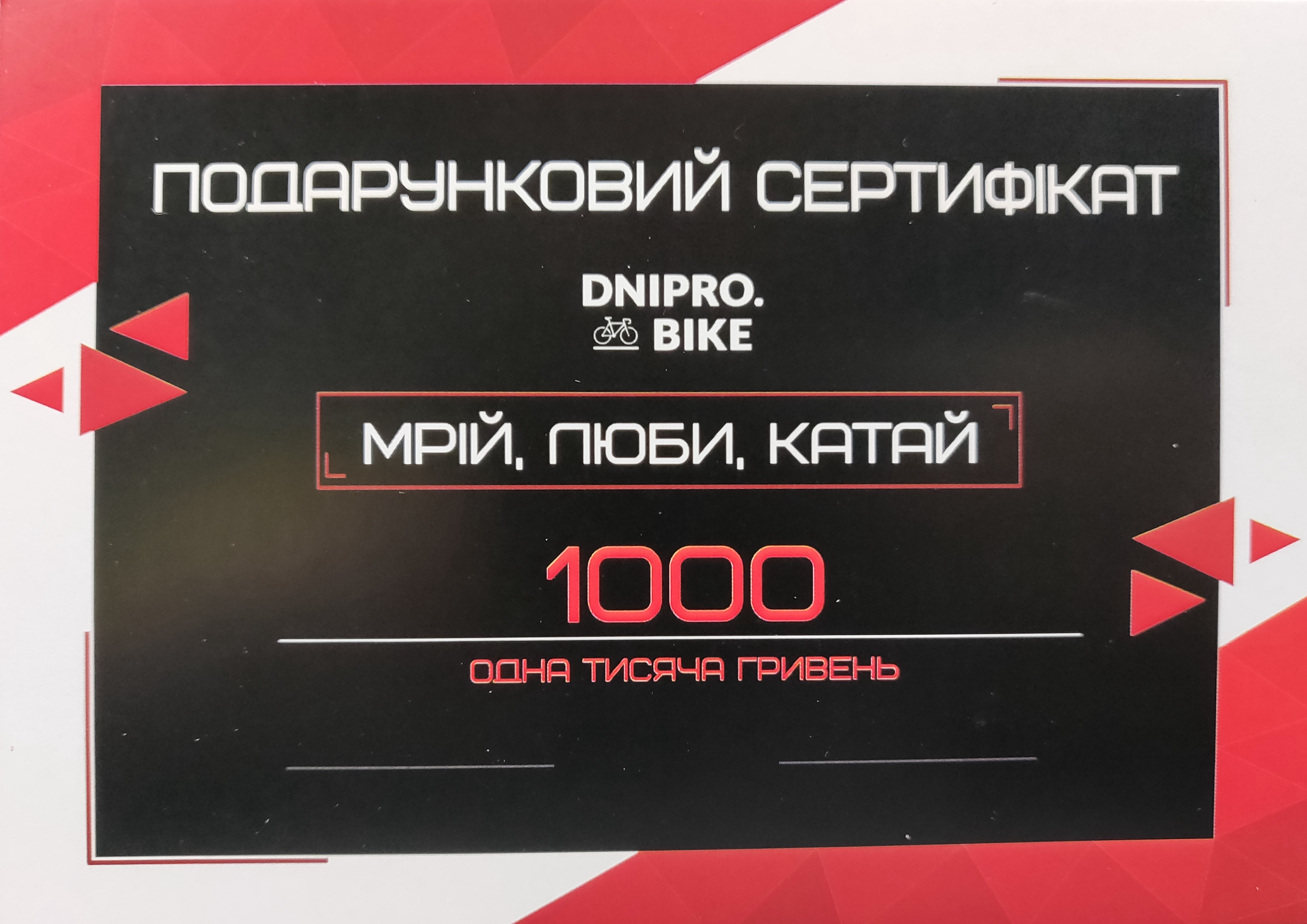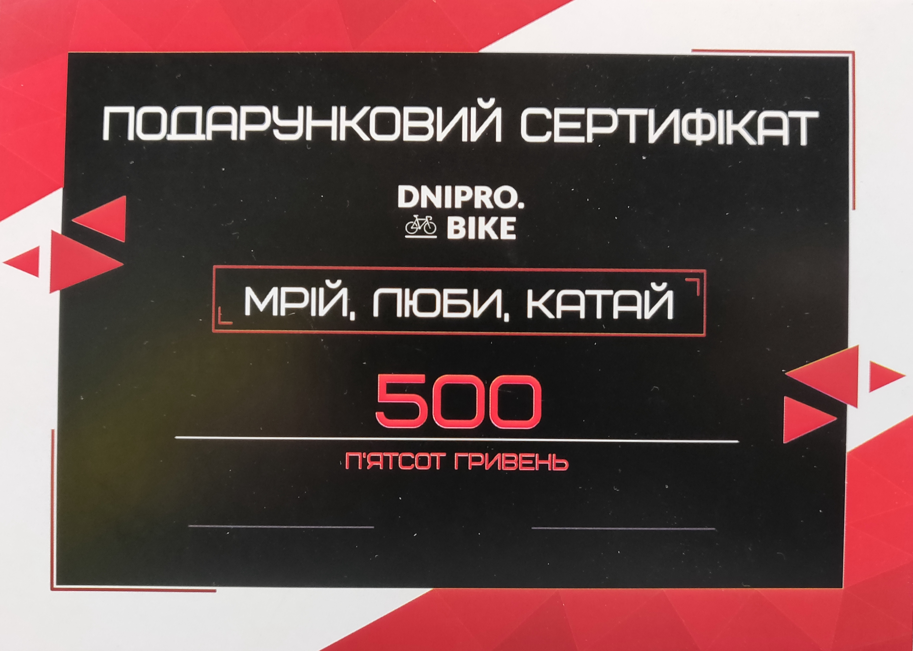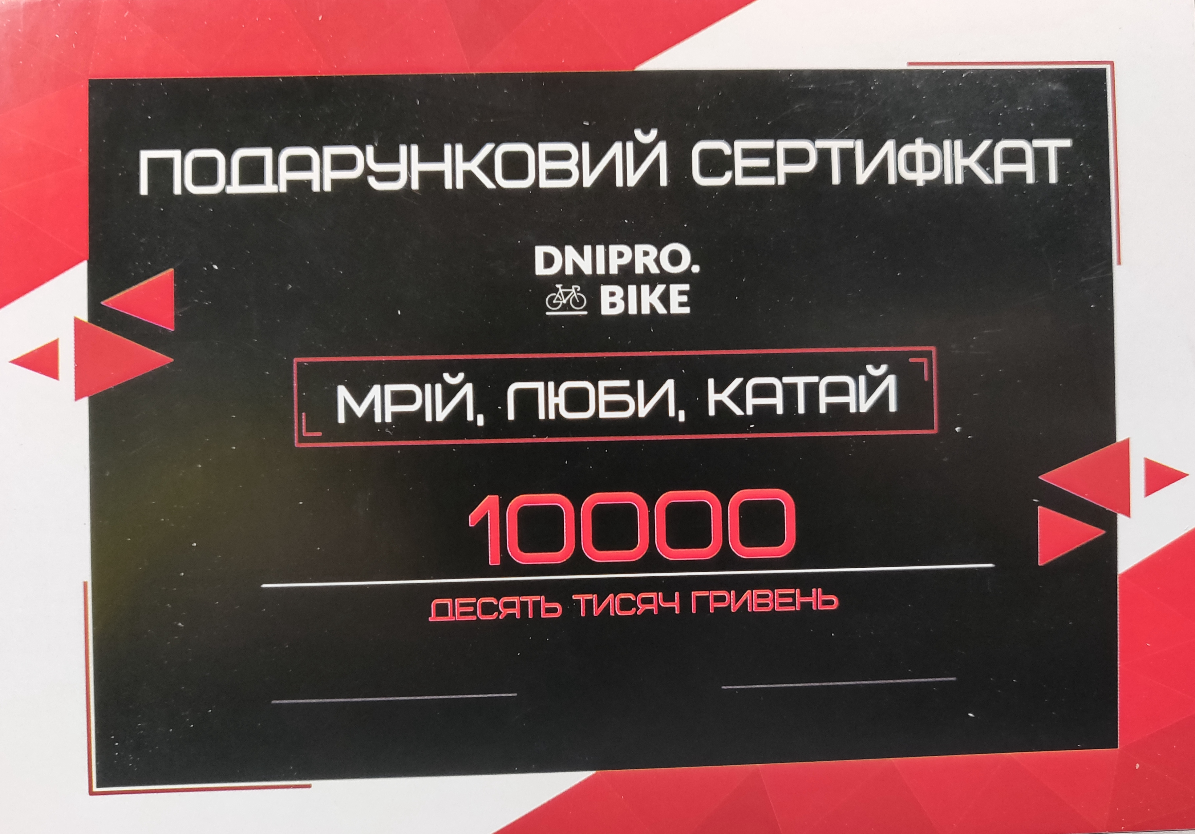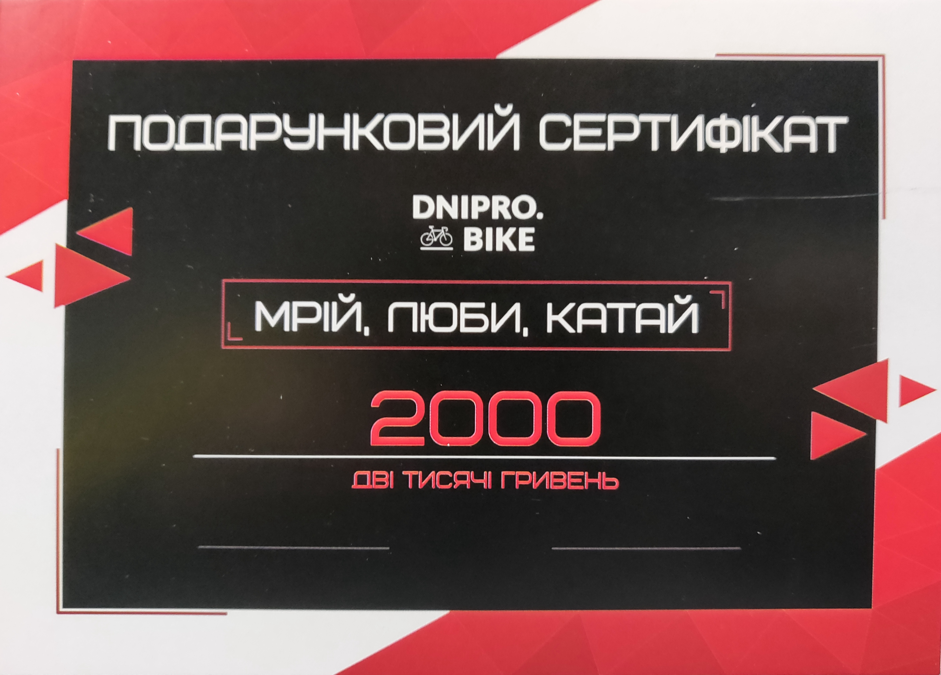 Не знаєте, що подарувати близькій людині, друзям або колегам по роботі? Ми поспішаємо вам на допомогу! Пропонуємо подарункові сертифікати номіналами 500, 1000, 2000, 5000, 10000 грн. Такий подарунок принесе радість будь-якому велолюбителю - це буде ваше потрапляння в яблучко!
