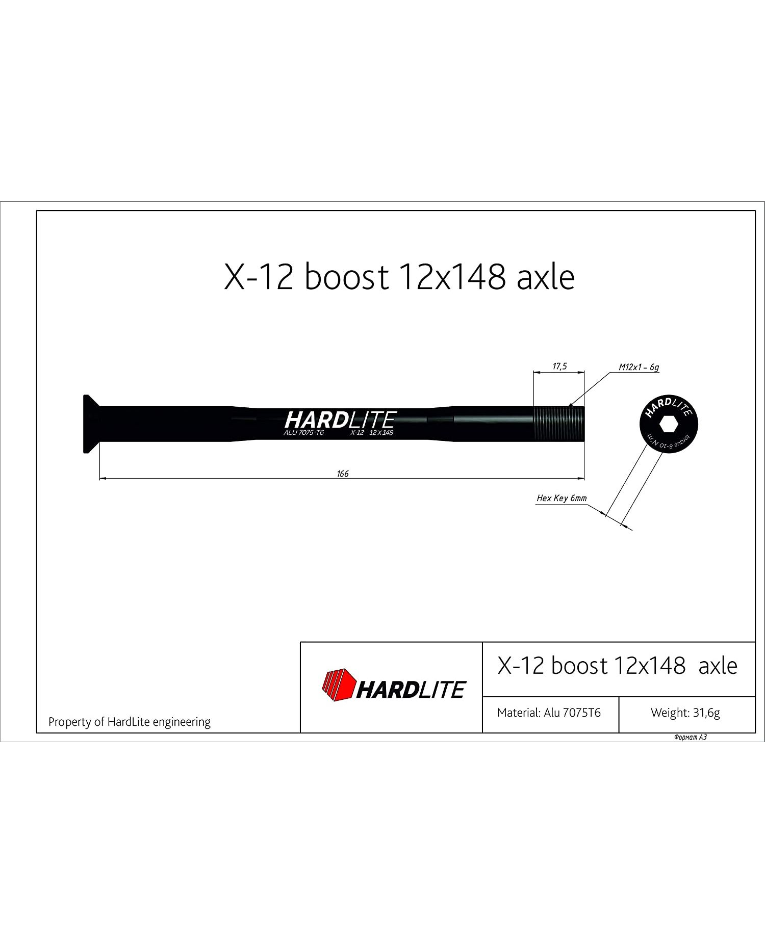 Вісь задня Hardlite X-12 12x148 чорна
