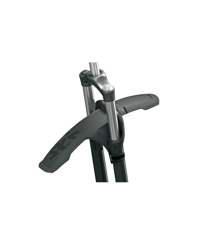 Крило SKS MUDROCKER FRONT - призначене для використання на гірських велосипедах з колесами діаметром 27,5"-29" з покришками шириною до 3.0". Крило має довжину 490 мм і монтується близько до покришки. Крило встановлюється на штани вилки за допомогою пасків з липучками Velcro і поставляється в комплекті з адаптером, який забезпечує безпроблемне встановлення на вилки всіх найпопулярніших виробників.