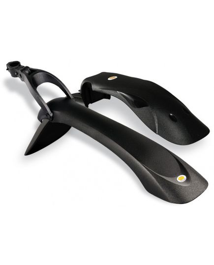 Універсальні швидкознімні крила від польського виробника. Даний комплект крил призначений для велосипедів з діаметром коліс 24-28". Оснащені універсальним типом кріплення, які забезпечують широкий грязьовий зазор, що в свою чергу дозволяє використовувати ці крила на всіх моделях гірських велосипедів. Переднє крило кріпиться в шток вилки, за допомогою спец затискача , заднє встановлюється на підсідельний штир, і має два шарніри для регулювання кутів нахилу.