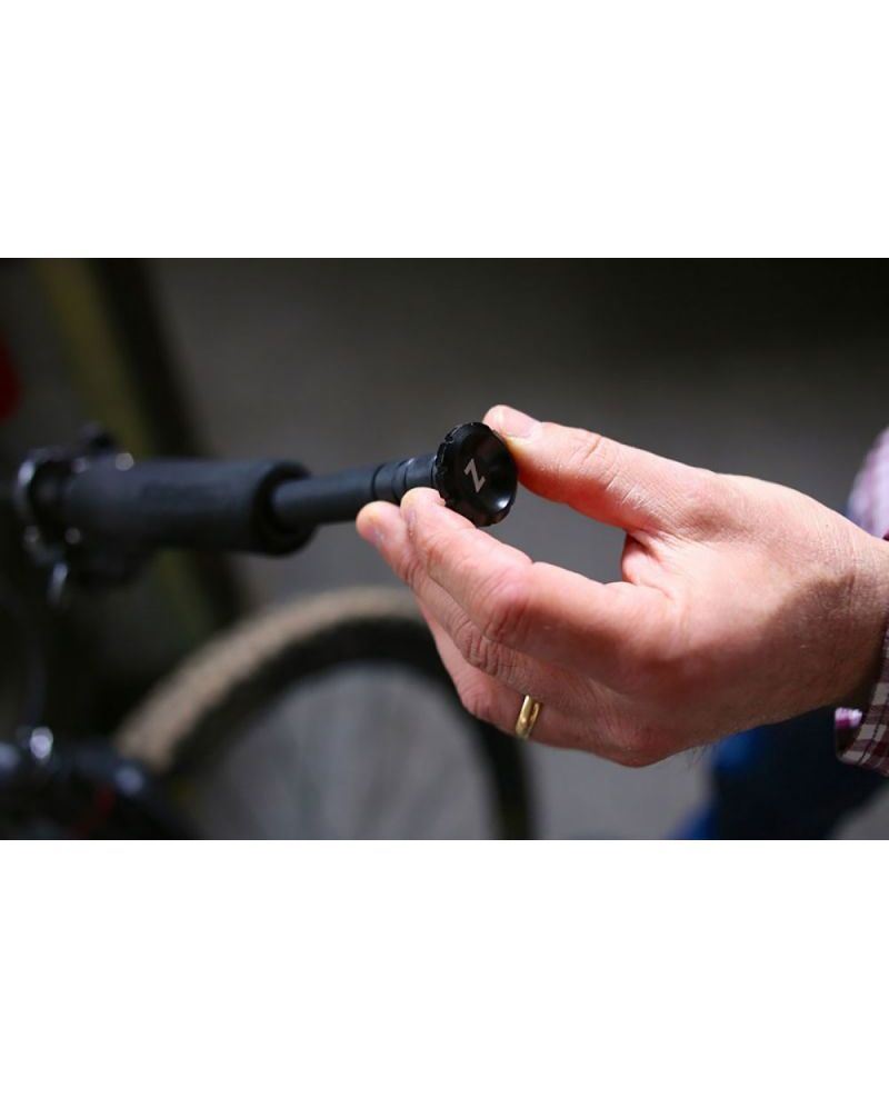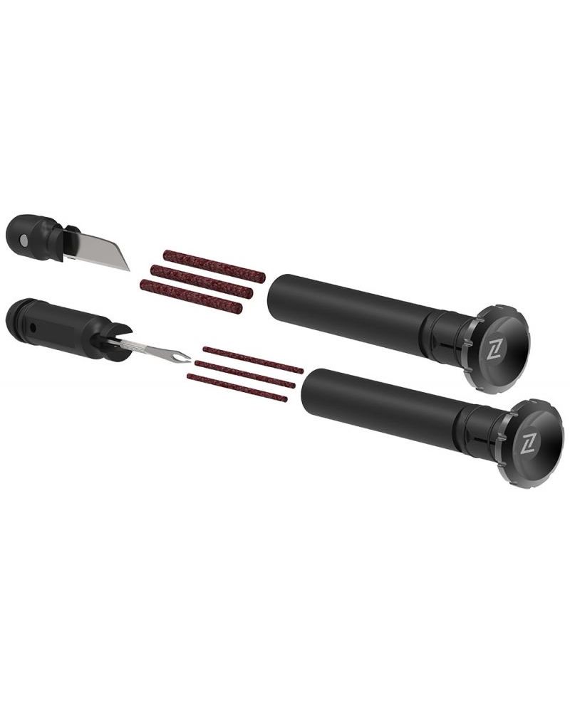 Для встановлення комплекту на кермо не потрібно жодних інструментів. Потрібно лише вставити тубус у кермо та провернути алюмінієвий корпус. Набір Z Bar Plug дозволяє завжди мати під рукою аптечку для ремонту безкамерки в дорозі.