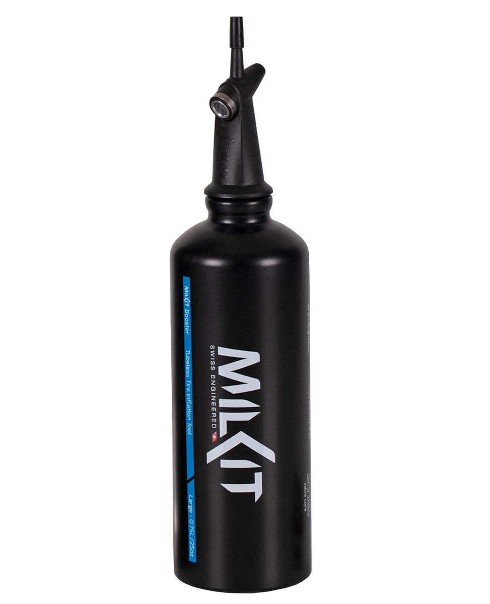 Набір для безкамерки MilKit Booster - це найлегший та найшвидший спосіб монтажу безкамерних покришок. Його можна брати з собою в поїздки, поміщаючи в фляготримач.