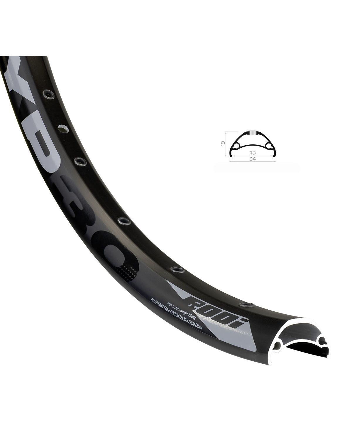 Обід велосипедний Rodi TRYP30 EVO 29" 622x30 IIS 32H BLACK anod. Ø6,5