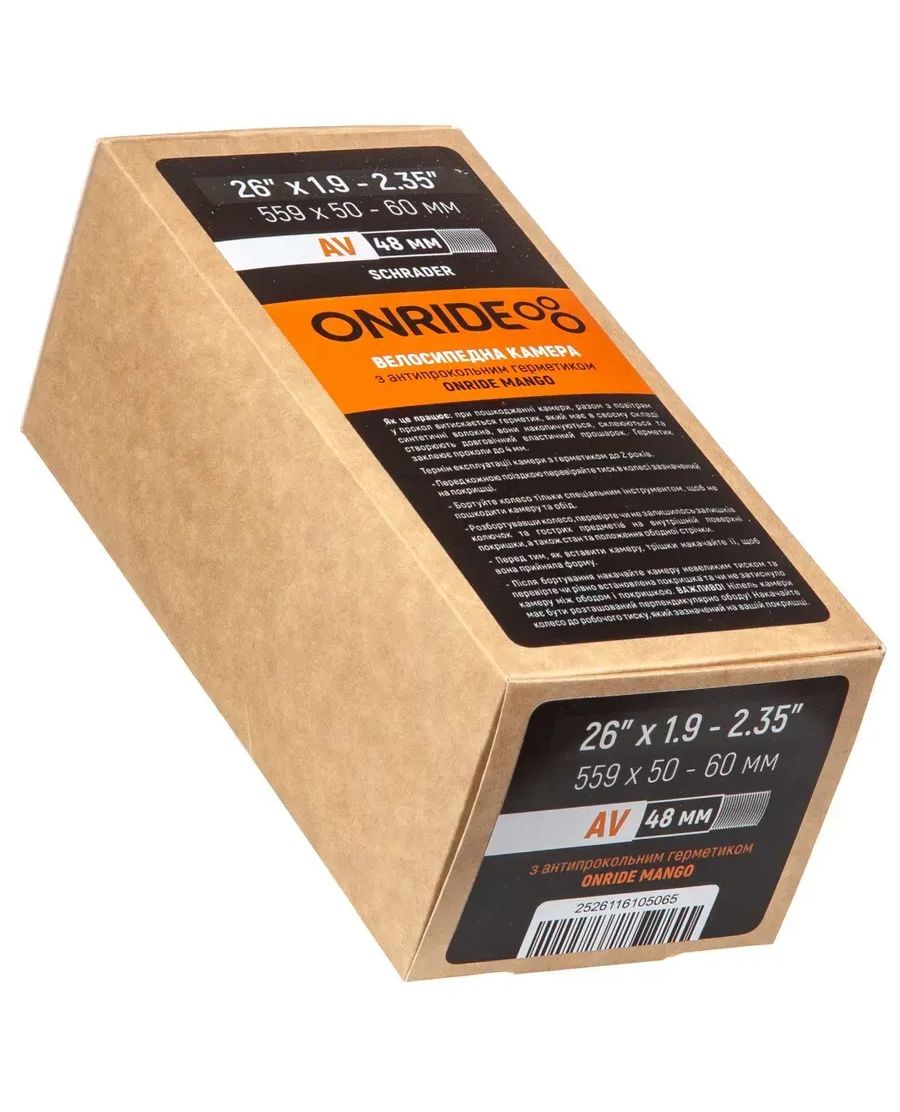 Особливості і характеристики Камера ONRIDE з герметиком ONRIDE Mango 26x1.9-2.35" (559x50-60) AV 48