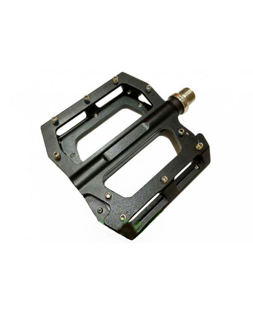 Платформові педалі. Alu фрезерований анодований корпус, промислові підшипники, змінні шипи. Картонна retail упаковка, чорний колір.