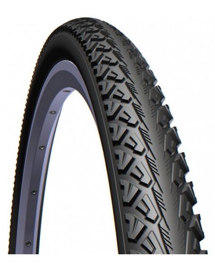 Виробник: MITAS (Rubena) Покришка з універсальним протектором від чеської компанії. Розрахована для використання на твердому асфальтовому покритті та на сухих ґрунтових дорогах. Має безперервну центральну частину з вираженими бічними шипами. Забезпечує хороше зчеплення з поверхнею і мінімальний індекс опору коченню. Оснащена мітками що показують ступінь зносу покришки.