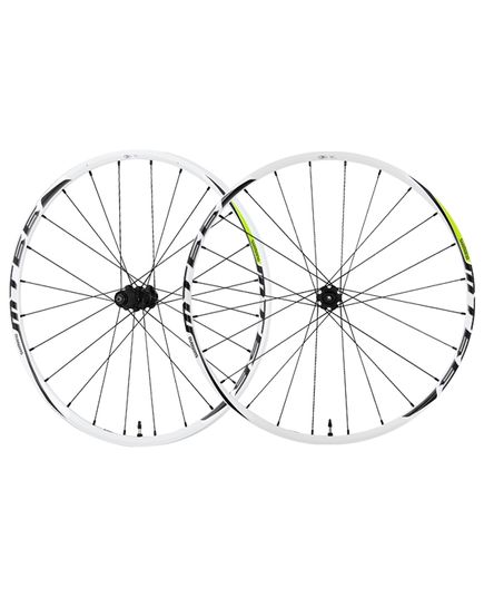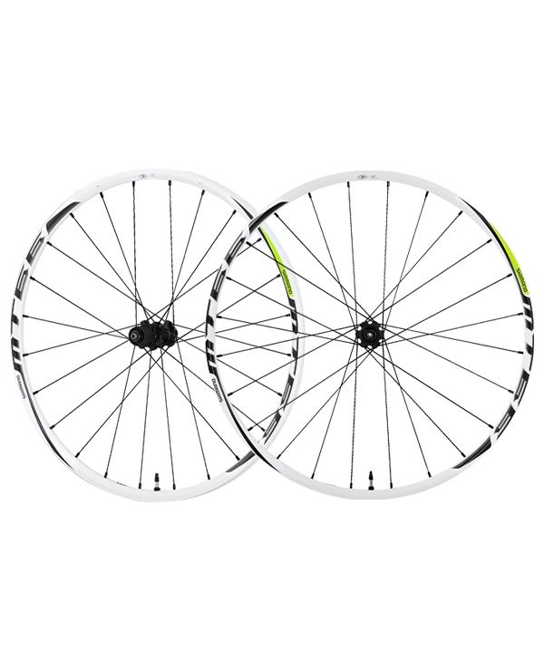 Колеса Shimano SLX 26″ WH-MT66 МТВ переднее+заднее, бескамерные, для диск торм, белые/зелен CENTER LOCK