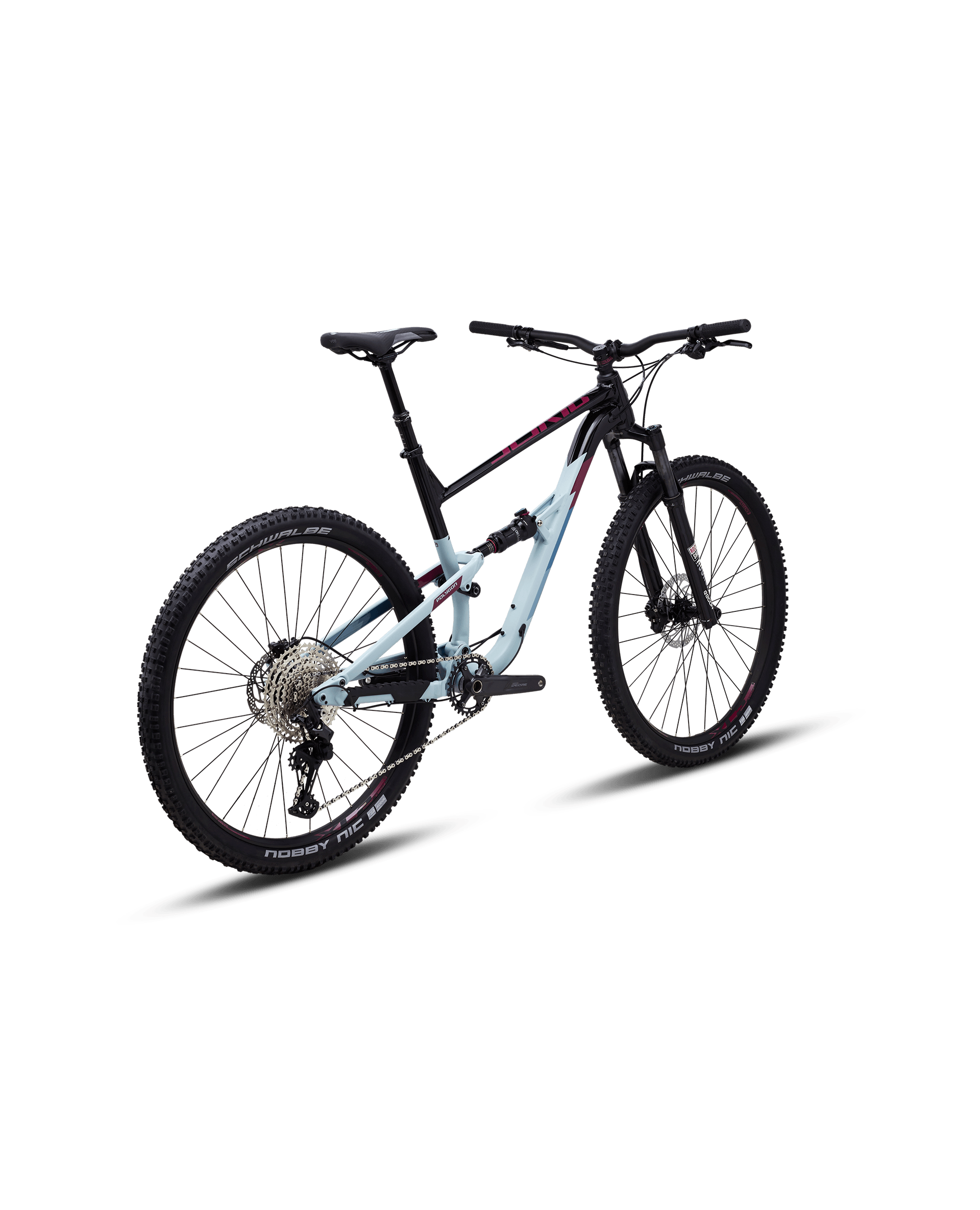 Велосипед комплектуется прочными колесами на двойных ободах Entity, обутых в покрышки Schwalbe Nobby Nic 2,25 дюйма.