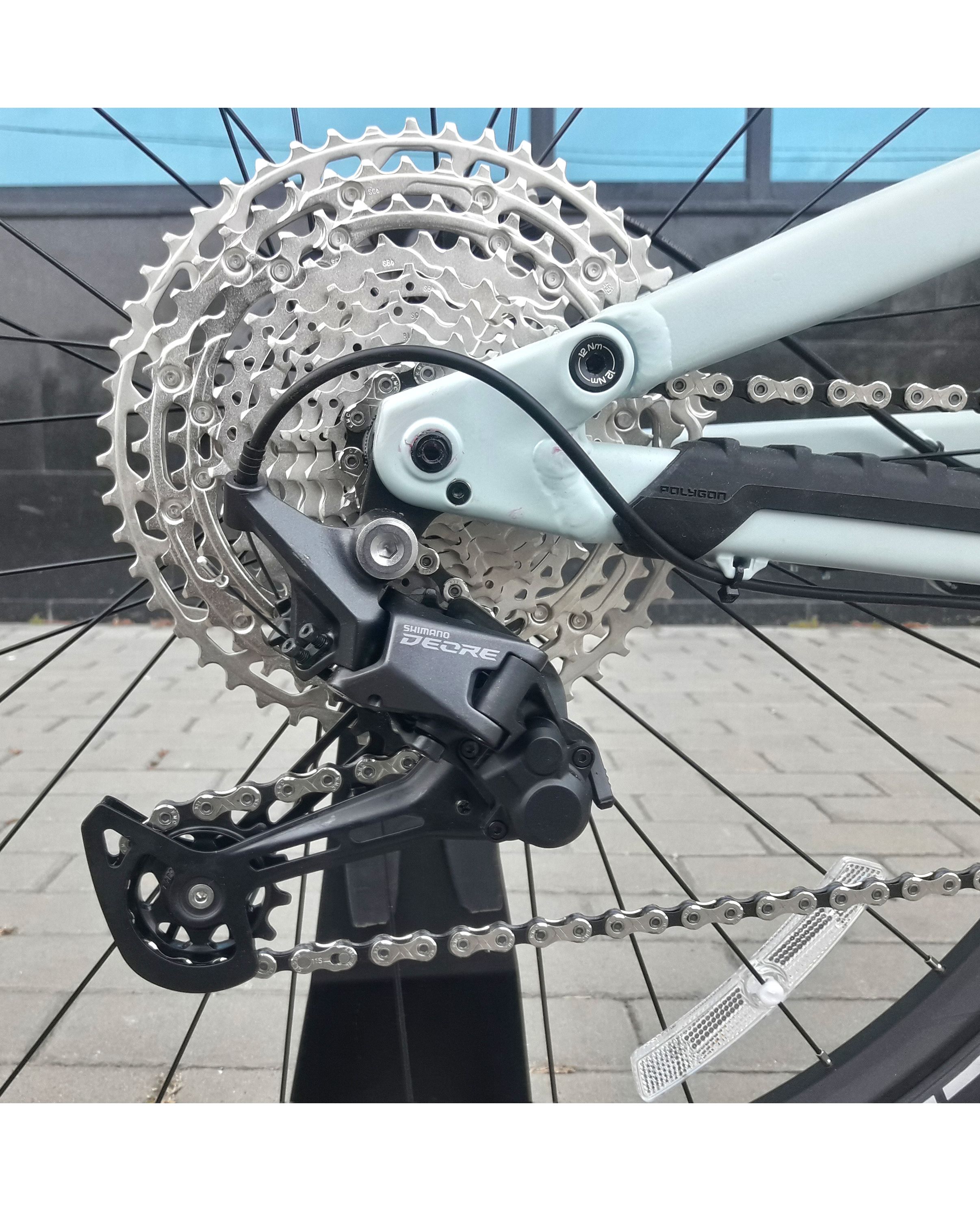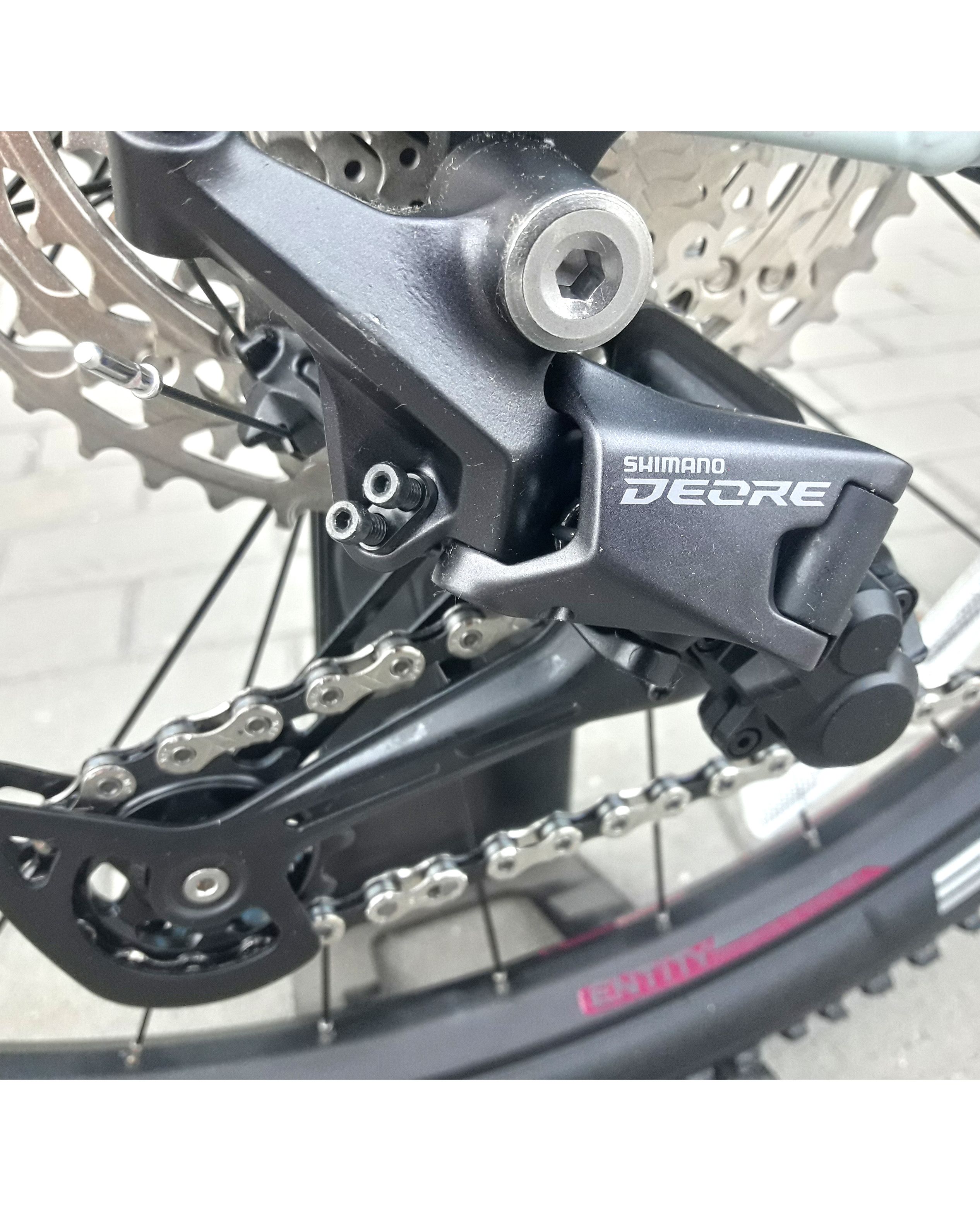 За переключение передач по кассете CS-M5100 с диапазоном 11-51 зубьев отвечает задний переключатель Shimano Deore RD-M5100 с технологией Shadow+, которая уменьшает дребезг цепи.