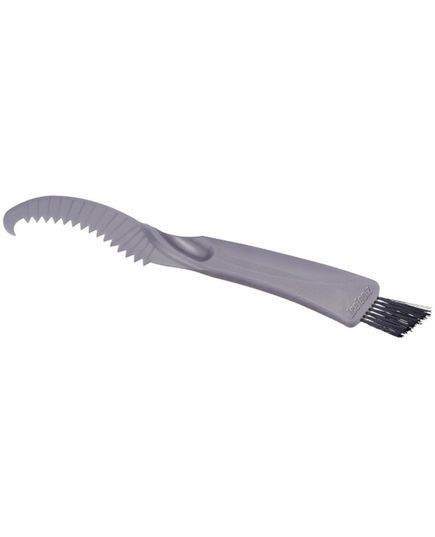 Сталкивались с проблемой чистки кассеты? Применяя специальную щетку с жесткой щетиной можно качественно удалить скопившуюся грязь, при этом не снимая и не разбирая кассеты. С одной стороны пластиковые зубья для чистки между звездами, с другой жесткая щетина для удаления грязи.