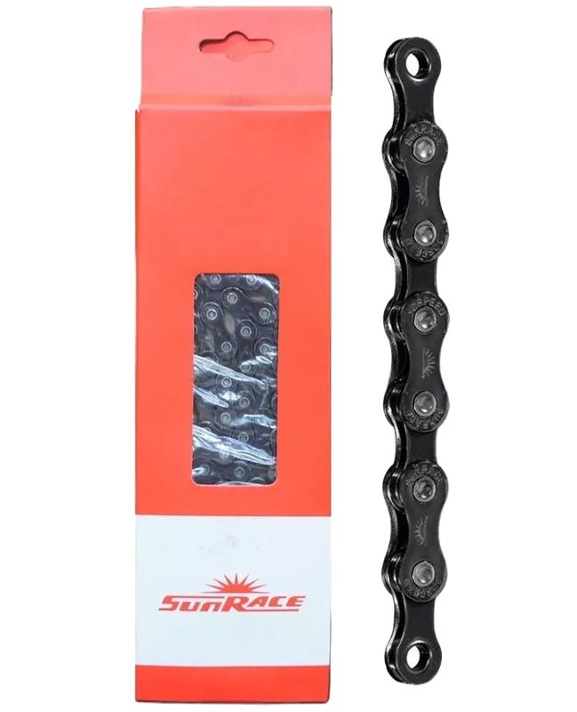 Цепь SunRace CNM84, 8 скоростей, 166 звеньев, черная, с замочком