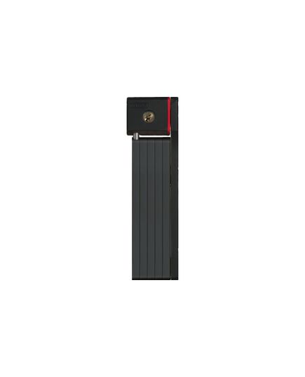 Замок сегментный ABUS 5700/80 Bordo uGrip Black состоит из шести стальных пластин толщиной в 5 мм. Пластины соединены между собою при помощи рухомых шарниров, защищённых от сверления. Благодаря этому замок собирается в компактный прямокугольник; его удобно перевозить на раме велосипеда.