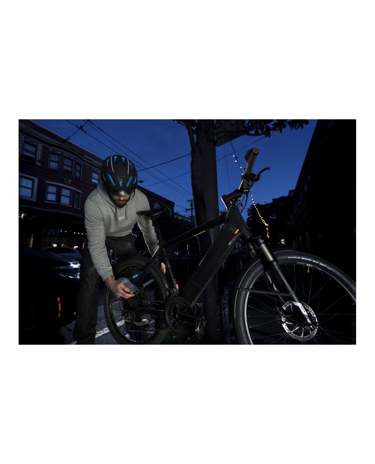Уникальный замок собирает GPS-данные последнего расположения велосипеда, которые можна переглянуть в приложении на своём смартфоне. Замок заряжается при помощи кабеля USB type C.