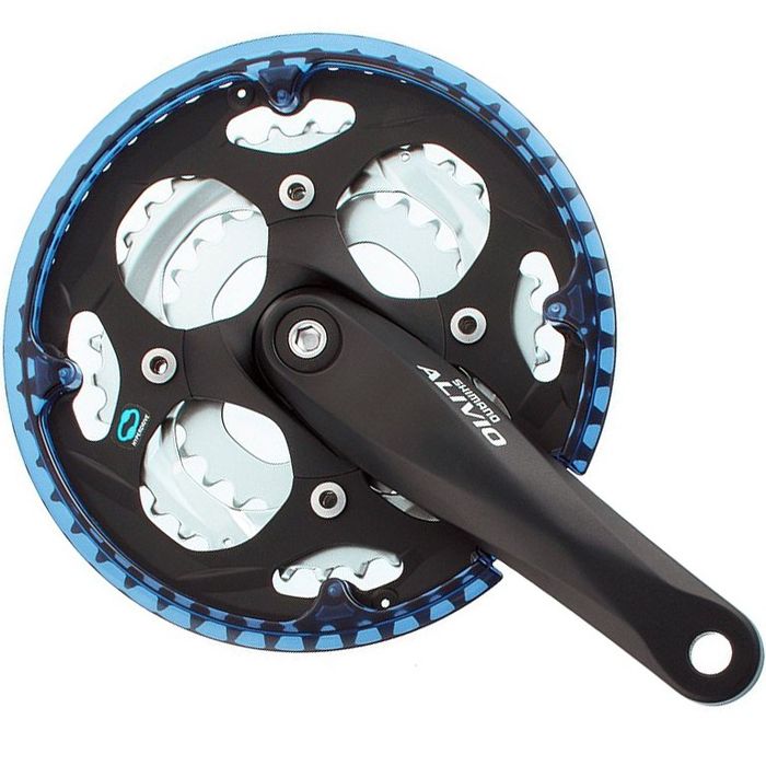 Зазвичай говорячи про навішування починають говорити з шатунів (або манеток). Але бувають також згадують технології - а в Alivio це Hyperdrive/Hyperglide - технологія спецфрезерування касет і зірок шатунів (і магія з ланцюгом) для швидкого перемикання передач - тим і примітна - ВСЕ! Отже, почнемо про шатуни. Шатуни (довелося трохи подивитися сайт Shimano.com) представлені у двох моделях - алюміній усюди, "квадрат" як каретка, різні набори зірок (44 або 48 як основний показник, з другими двома - готовий не зважати взагалі) та присутність/відсутність чейнгуарду (рокрінг у деяких людей або "ця пластикова фігня" в інших). Усе, що треба знати про шатуни, - це те, що з ними все гаразд (бо, як правило, "не гаразд" - це каретка - в міру надійна, але страшенно не любить різного бруду (сюрприз! Як несподівано, погодьтеся).