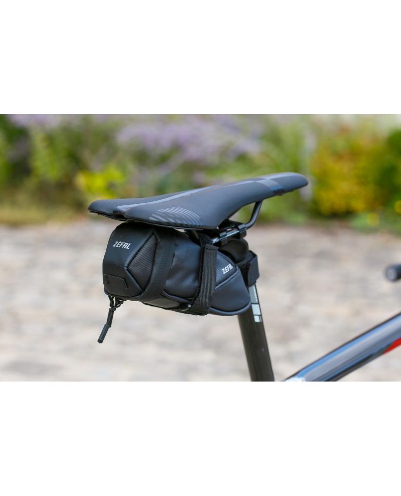 Аеродинамічна сумка Zefal Iron Pack 2 S-DS має систему кріплення на липучках, а широкий отвір забезпечує легший доступ.