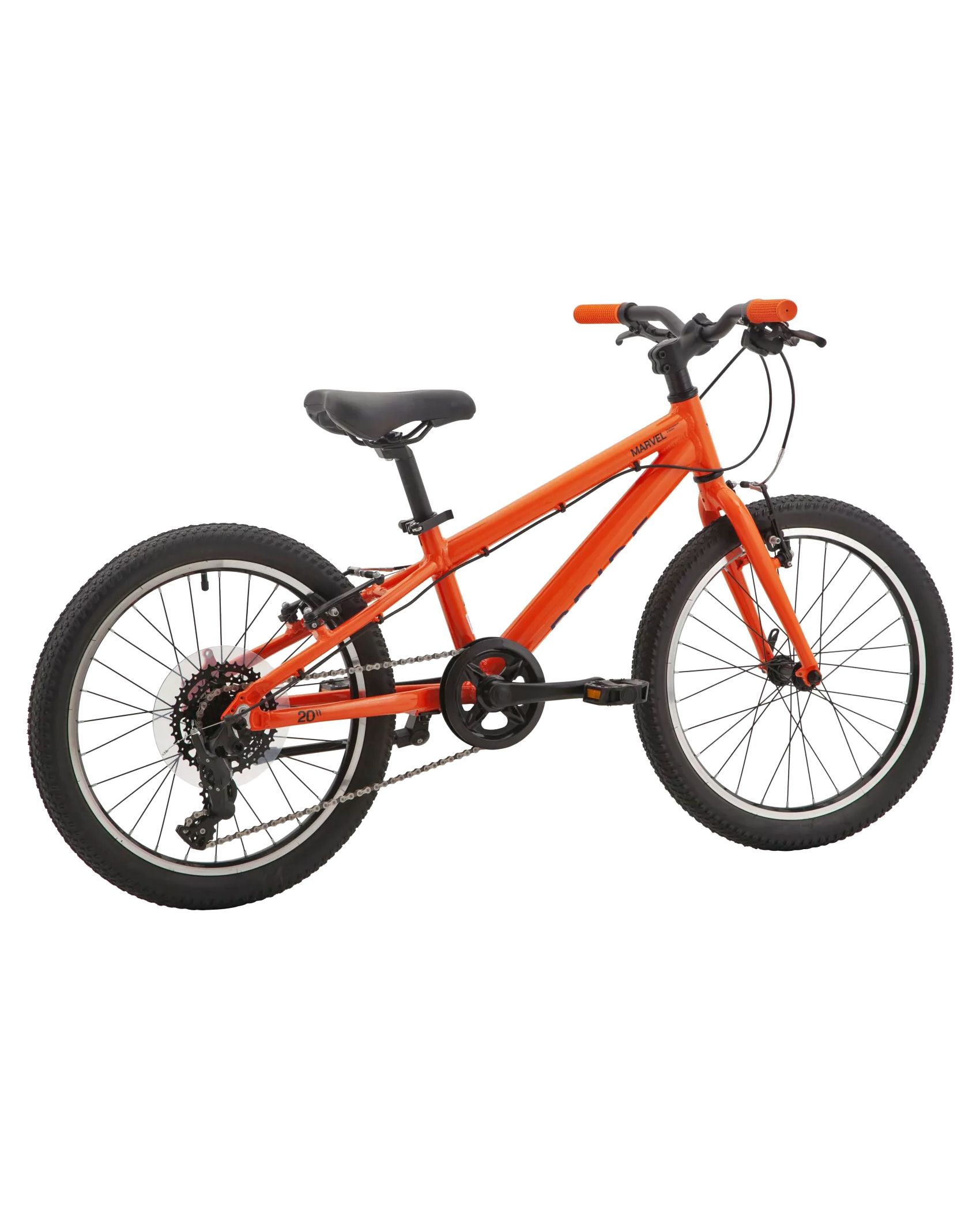 Легка алюмінієва рама зі сплаву 6061 і вилка не тільки роблять велосипед легшим, а й забезпечують хорошу міцність і захист від корозії. Занижена верхня труба рами полегшує посадку і сходження з велосипеда, а широке кермо і компактна геометрія сприяють впевненій, контрольованій їзді. Такий підхід робить Marvel 2.2 схожим на дорослі велосипеди, що спрощує перехід на більші моделі в майбутньому.