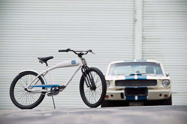 Компанія Ford спеціально до презентації реінкарнованого кабріолета Mustang Shelby GT50 2011 року створила стилізований велосипед Shelby Cruiser. Основою йому послужила алюмінієва рама, виробництвом якої займається сам автовиробник. Трансмісія від Shimano, коробка передач у ній - тришвидкісна Nexus. Схожість з автомобілем досягається завдяки типовому для Shelby розфарбуванню велосипеда. Ціна $999.